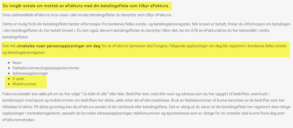 For at du skal kunne motta eFaktura fra nye utstedere, så du ha slått på funksjonen "Alltid eFaktura" som DNB kaller det.