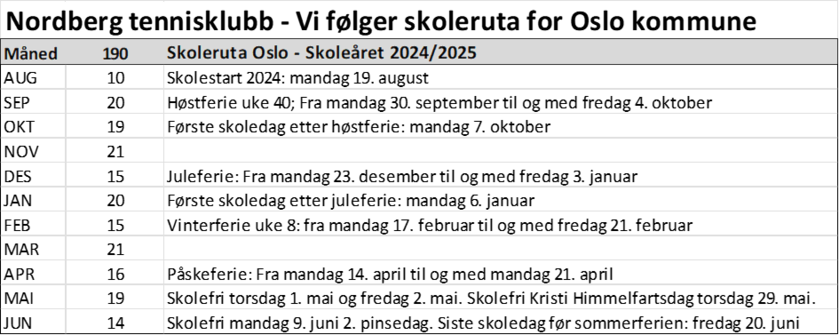 Ta kontakt via adm@nordbergtennis.no om du har spørsmål