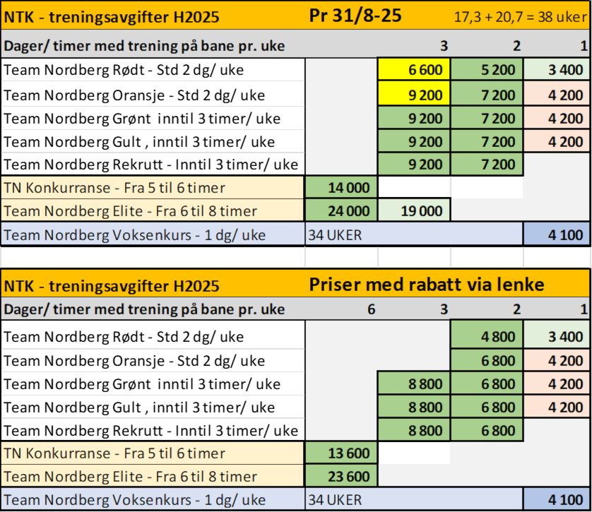 Treningsavgifter - priser høsten 2025.