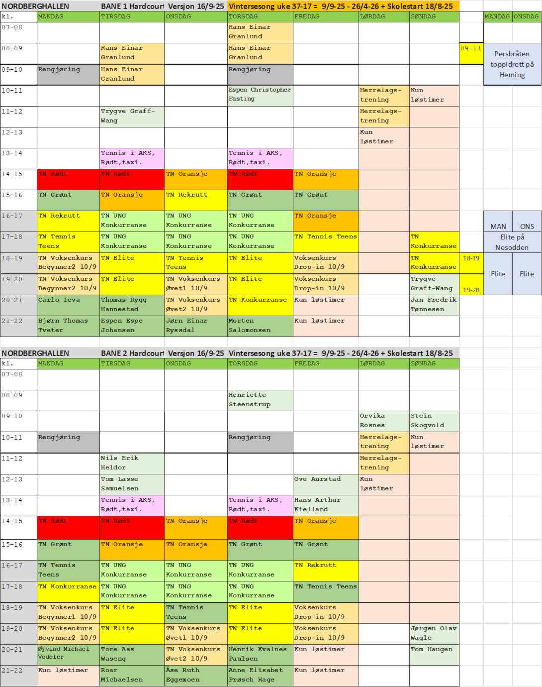 - Høsten 2025 inngikk André sine timer som en "dugnad" mellom klubbene, så klubben blir kun fakturert for baneleie dette semesteret. Denne kostnaden skal i prinsippet viderefaktureres brukerne.