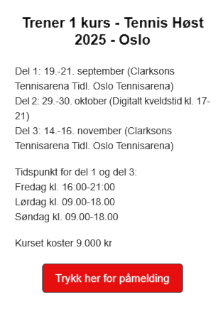 Tennis - Trener 1 - Høst 2025 - Oslo - Min idrett
