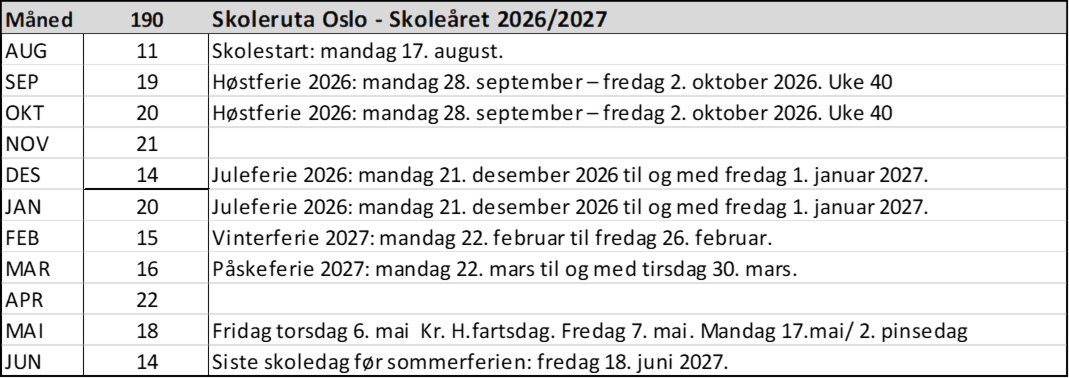 - Skoleruta for 2026-27 er lagt inn